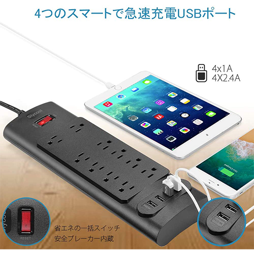 ■Slycool 電源タップ USBコンセントAC10個口+4USBポート