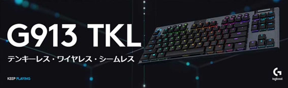 - 薄型 GLスイッチ タクタイル 日本語配列 LIGHTSPEED 無線 Bluetooth 接続対応 これまでのデザインと設計の飛躍的な前進。ブラックとホワイトの新色も登場しました。G913 TKLはプロ レベルのワイヤレスLIGHTSPEED、高度なLIGHTSYNC RGB、高パフォーマンスを誇るコンパクトなメカニカル スイッチを装備。上質素材で巧みに作られたG913 TKLは、比類のない美しさ、強度、およびパフォーマンスを備える洗練されたデザイン。さらに、フォームファクターがコンパクトになりました。G913 TKL。新次元のプレイ。